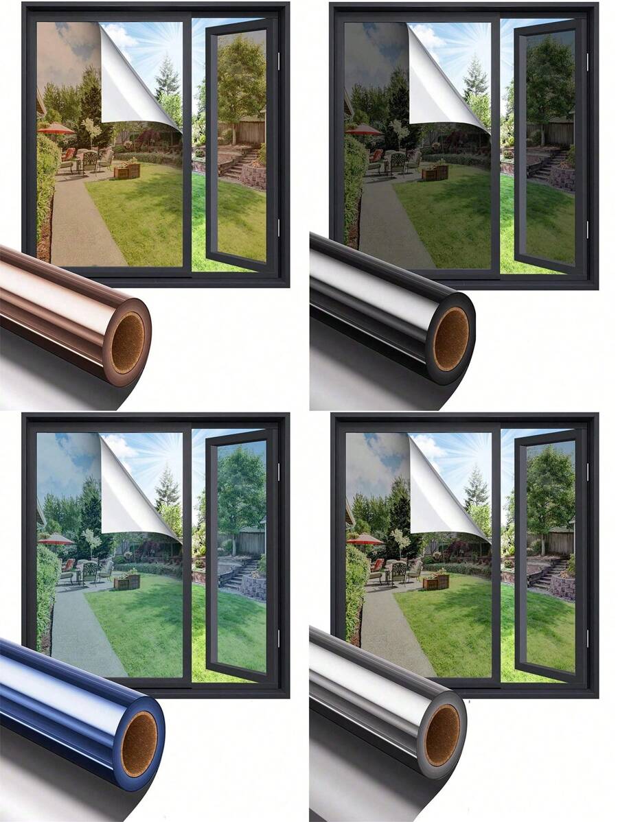 1 Rollo de película para ventana de un solo sentido, película de ventana reflectante y con efecto espejo, película de privacidad y control de calor, película adhesiva para ventana con protección UV y anti resplandor, película de para ventana que bloquea el sol, para uso doméstico y de oficina