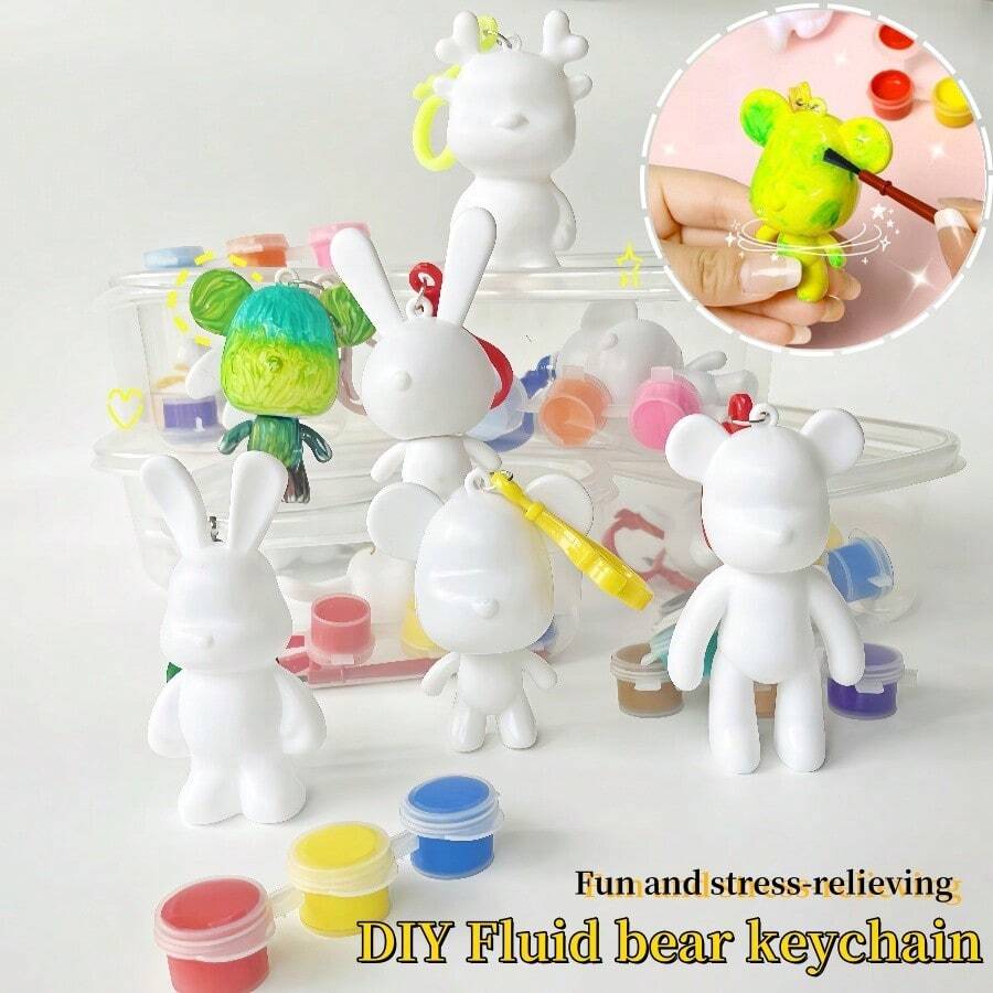 Juego de 1/3 piezas Oso de fluido Graffiti DIY, llavero de oso de fluido de dibujos animados, materiales de artesanía DIY, juguetes en blanco de graffiti pintados a mano, adecuado como obsequio de fiesta, recompensa en el aula, accesorio colgante (color de accesorio aleatorio), Regreso a la escuela, Útiles escolares