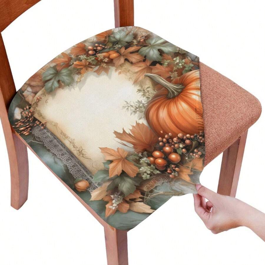 1/4/6/40 piezas Cubiertas de silla de fibra de leche estirables y extraíbles con estampado de hojas de otoño, girasoles y calabazas, para restaurante, cocina, comedor, hotel - Fundas de cojín de silla cuadradas extraíbles y suaves