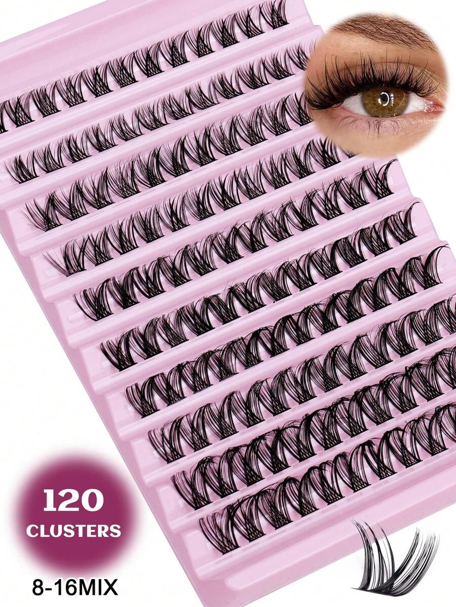120 piezas de extensiones de pestañas estilo ojo de gato D-Curl esponjosas, racimos de pestañas gruesas de 8-16 mm, extensiones esponjosas naturales, kit de extensiones de pestañas falsas de mink DIY, voluminizador de pestañas, textura de pestañas suave y esponjosa, look de maquillaje dramático y desordenado, adecuado para cosplay, actuaciones, uso en fiestas