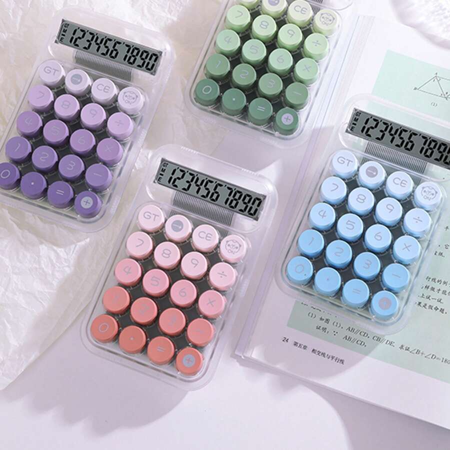 1 pieza Calculadora de botones grandes de 10 dígitos con degradado de color, carcasa transparente estética, kawaii para padres, rosa, colores degradados básicos, 14,5 cm