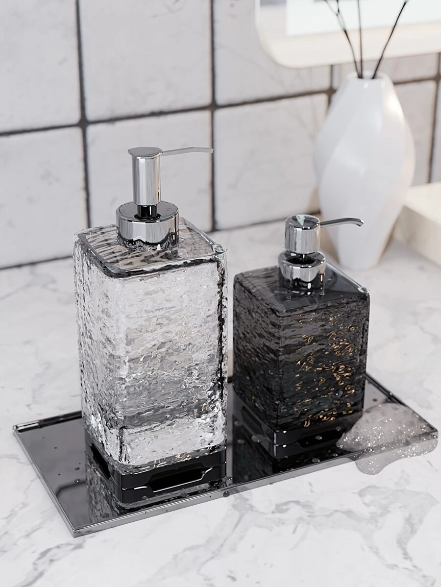 Botella dosificadora cuadrada plateada gris transparente de 400 ml