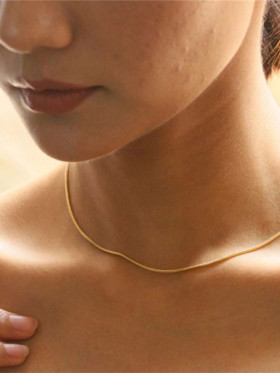 1 pieza Elegante collar de cadena de acero inoxidable con diseño de hueso de serpiente, color dorado, adecuado para uso diario de mujeres, cumpleaños, combinación para fiestas, regalo para amigos