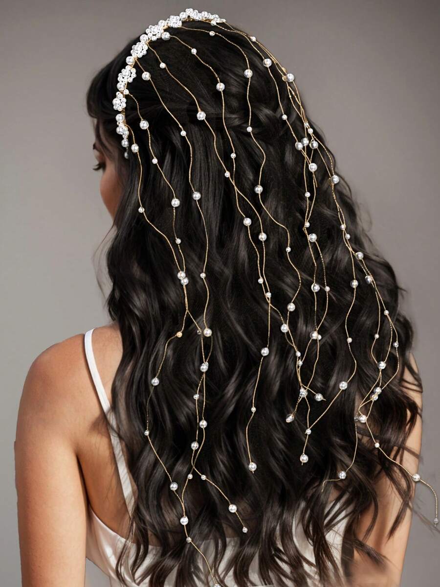 1 pieza Diadema nupcial elegante con flecos de perlas falsas, accesorio para el cabello de mujer adecuado para uso diario, fiesta, fotografía, celebración, festival, accesorios del Día de San Valentín