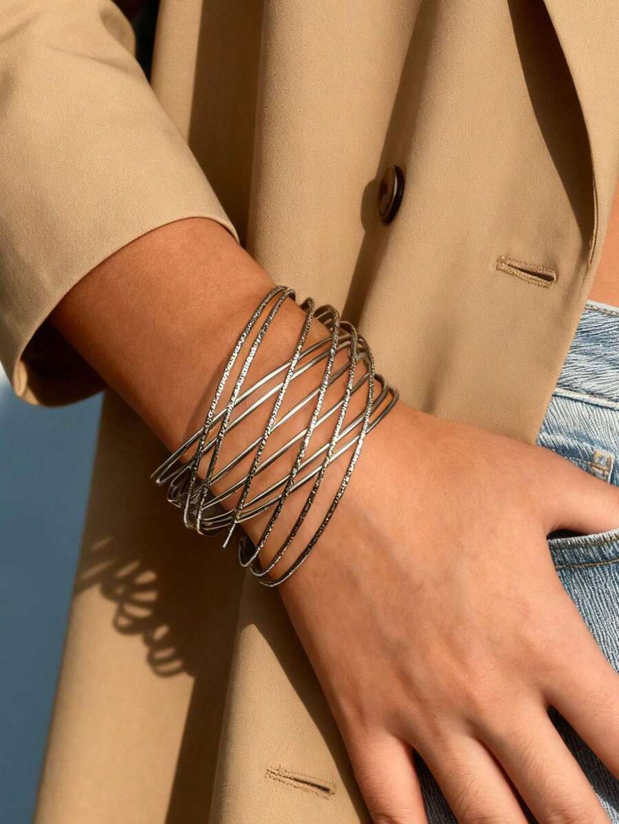 1 pieza Brazalete único de mujer con diseño geométrico cruzado, adecuado para uso casual, de compras, fiestas de noche, regalo perfecto (evitar el contacto con el agua)