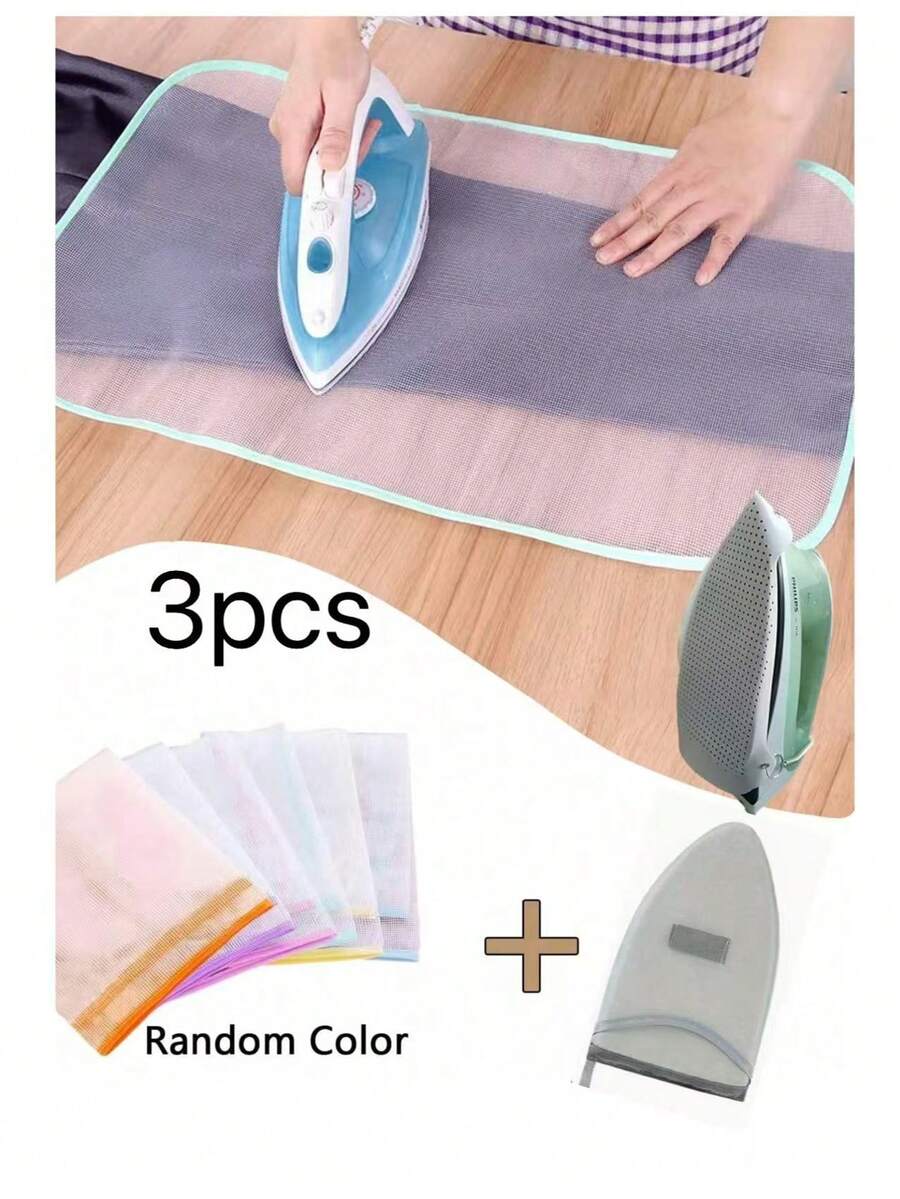 1 pieza/2 piezas/3 piezas Set de protectores de hierro premium y alfombrilla de malla resistente al calor, duradera, fácil de instalar, protectores de plancha de vapor, almohadilla protectora de planchado adecuada para uso diario, red de aislamiento de planchado gruesa para abrigos, trajes, ropa de trabajo