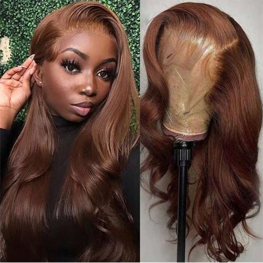 Peluca de cabello humano con encaje frontal transparente de 30 pulgadas, ondulada y rizada, de color marrón chocolate, con encaje frontal transparente marrón, pre-arrancada, para mujeres
