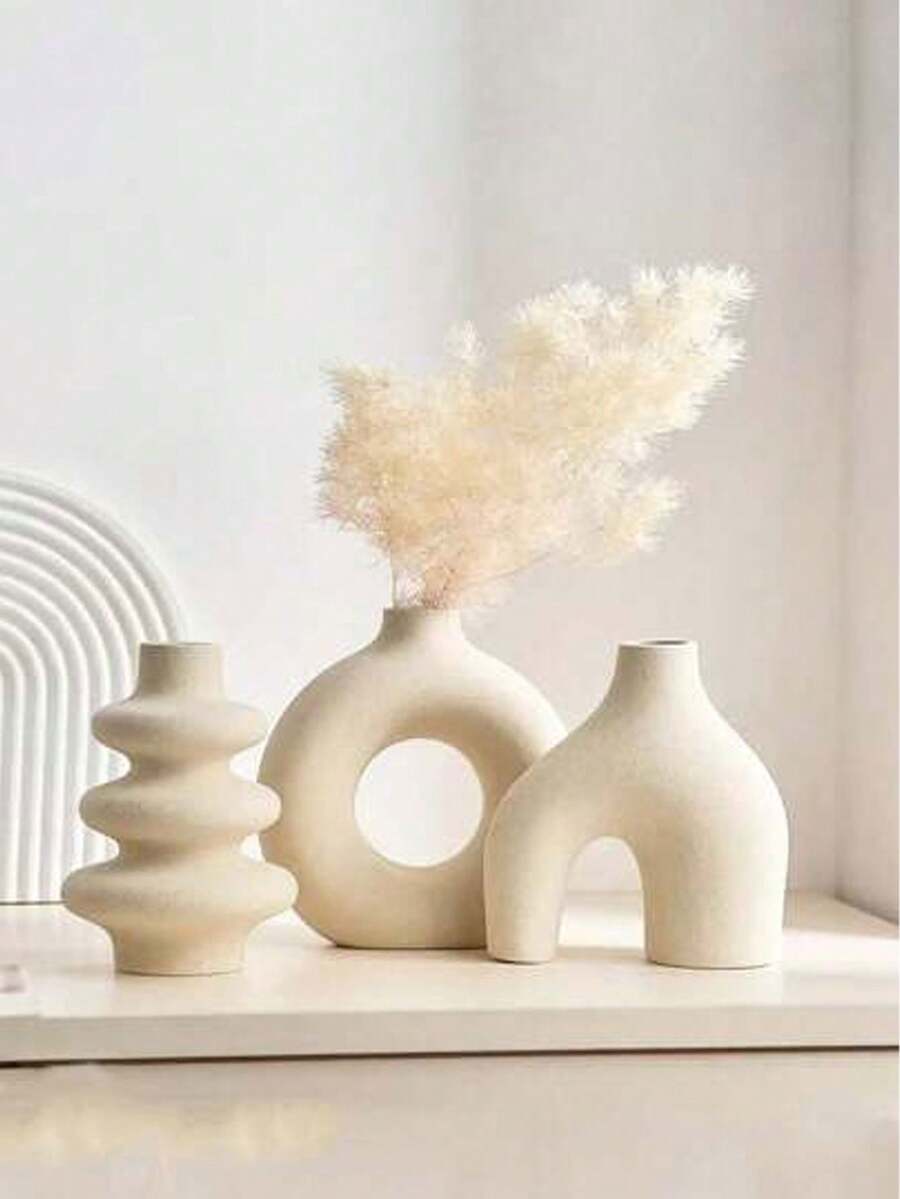 1 pieza Jarrón decorativo de cerámica con diseño geométrico, jarrón decorativo de cerámica minimalista nórdica, adecuado para decoración de mesa central de hogar de moda moderna, decoración de dormitorio estética, jarrón moderno, jarrón bohemio, jarrón redondo, jarrón donut, jarrón neutro para decoración del hogar