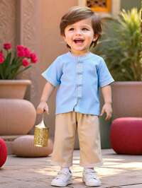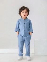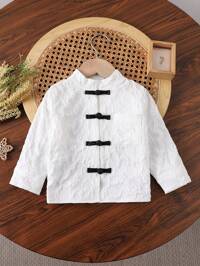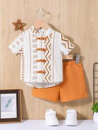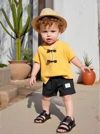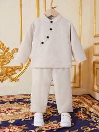 Conjunto de 2 piezas para bebés niños, estilo hanfu con Body de punto y conjunto de batas holgadas con diseño de botones, incluye Body y pantalones, adecuado para otoño/invierno, transpirable, estampado lindo, tela premium, sensación elegante de alta gama, versátil para uso diario, deportes, salidas casuales