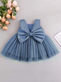 Glamorique KidsSHEIN Glamorique Kids Vestido de tul de princesa para niñas, vestido de malla azul, para fiesta de cumpleaños, boda, gala formal, uso en fiestas, con flores bordadas en blanco, cinta plateada, gemas azules, mangas abultadas, vestido lujoso de estilo de Oriente Medio, para todas las estaciones #8 Más vendidos