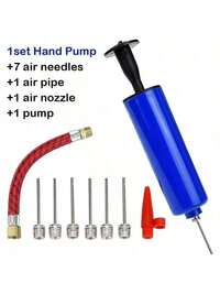 Bomba de aire portátil, kit inflador de balones con aguja, boquilla y manguera de extensión apta para fútbol, baloncesto, voleibol, waterpolo, rugby, ejercicio, pelotas deportivas, globos, natación y inflado. Kit de bomba manual completo con aguja, manguera flexible, manómetro y bolsa portátil, perfecto para baloncesto, fútbol y voleibol #7 Más vendidos