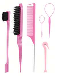 Kit de herramientas de accesorios para el cabello, incluye anillos para trenzas, cuchillo con funda de cuero, cepillo de pelo esponjoso, peine de cola puntiaguda, cepillo de bordes, cepillo de nuca y bordes, peines, peines, peines para damas, para peinados, cortador de bandas elásticas para el cabello, herramientas desechables para quitar lazos de goma, accesorios de peinado, prevenir el tirón del cabello y daños en el cuero cabelludo (multicolor), esencial para volver al colegio, viajes y vacaciones, rizos sin calor, esencial para viajes, peinado, peluquería, rizado, tenacilla #6 Más vendidos