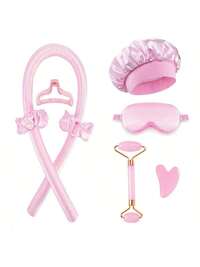 4/6/8 piezas Juego de herramientas para el peinado para dormir, rodillos para el cabello y masajeador facial, juego de rizado sin calor de satén, rizadores de cabello para pasar la noche, 1 pieza de máscara para los ojos suave para dormir, rodillo facial para el cuidado de la piel para mujeres, rizadores de cabello, rizos sin calor, rizador de cabello, productos y accesorios para el cabello para peluquería, salón de belleza, vuelta al colegio, artículos esenciales para viajes y vacaciones #5 Más vendidos