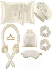 Set de 12 piezas de herramientas para el peinado nocturno, incluye rizador y masajeador facial, 1 funda de almohada, adecuado para suite de reina beige, sin necesidad de calor para rizar, dispositivo de rizado nocturno, 1 antifaz para dormir, rodillo de masaje facial para damas, productos para el cuidado del cabello, productos para rizar, accesorios para el cabello, set de cuidado del cabello, kit de herramientas para el cabello, toalla para el cuidado del cabello, adecuado para salón, hotel, gimnasio, artículos para el hogar, toalla, toalla para el cabello seco #8 Más vendidos