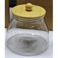 Plato de frutas de vidrio transparente con tapa de bambú y madera, estilo creativo, estilo japonés, bandeja para frutas secas, plato de frutas con múltiples compartimentos, adecuado para la mesa de café del hogar