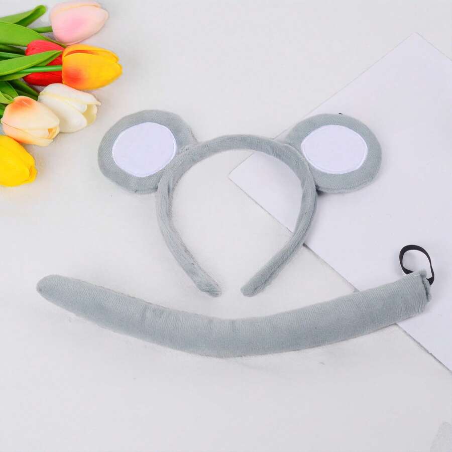 Set de diadema con orejas de gato blanco de dibujos animados, orejas de ratón y cola, accesorios de disfraz para Halloween