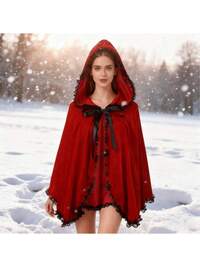 1 pieza Disfraz de Caperucita Roja - Capa con capucha roja con ribete de encaje, adecuado para Halloween y Navidad, conjunto clásico de cuento de hadas