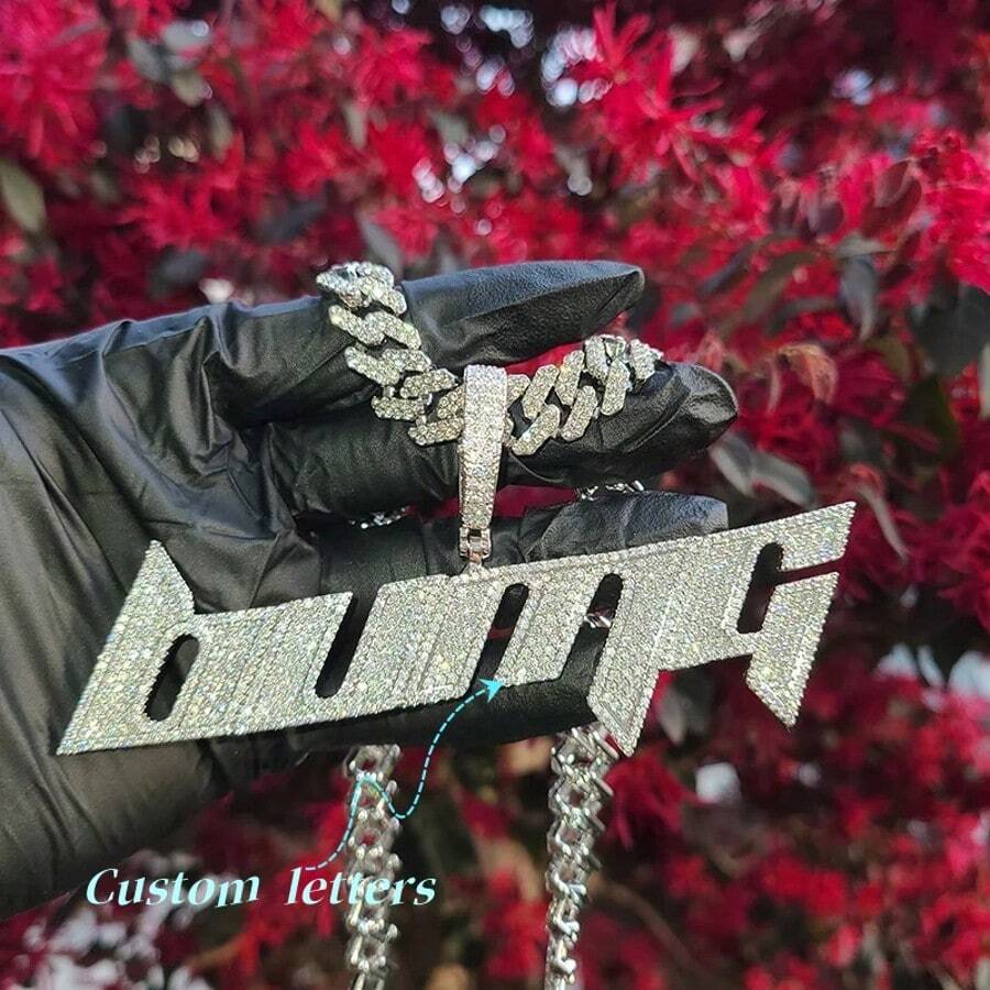 Colgante personalizado con letra y número, zirconia cúbica de latón, collar de hip hop personalizado DIY, joyería de uso diario para parejas, incluye cadena trenzada de 50 cm