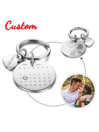 1/2 piezas Llavero personalizado de acero inoxidable con foto y texto, llavero personalizado de doble cara para mujeres, llavero grabado personalizado para hombres, para encantos de hombres y mujeres, llavero de pareja personalizado, llavero personalizado para novio, regalo personalizado del Día de San Valentín, llavero familiar, llavero de mascota con lentejuelas vintage, unisex, casual, lindos personalizados, personalizado, único, delicado romance, utilitario elegante #4 Más vendidos