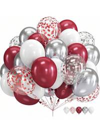 55 piezas/28 piezas Juego de globos de látex de 10 pulgadas/12 pulgadas en color plata metálico, blanco, rojo granada, plata brillante, rojo brillante, adecuado para aniversario, San Valentín, decoración de Año Nuevo, decoración de boda, fiesta de cumpleaños, ceremonia de graduación, decoración de compromiso, reunión familiar #1 Más vendidos