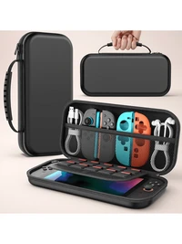 Bolsa de almacenamiento para Nintendo Switch/Switch OLED, color negro/blanco, compatible con cargador y base original, bolsa de almacenamiento para Switch 2, bolsa para 2 controladores Joy-Con, gran capacidad todo en uno, incluye consola, asas, tarjetas de juego, asa de transporte universal, bolsa de viaje portátil, dispositivo protector, anti-caída, anti-arañazos, antideslizante. #3 Más vendidos