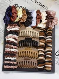 119 piezas/Set de accesorios para el cabello en tono chocolate, que incluye diademas, pasadores de pelo grandes con forma de camarón, lazos y scrunchies para el cabello - Adecuado para niñas y mujeres, para ir al trabajo, citas, fiestas, vacaciones casuales, permitiéndote irradiar un encanto único y ser el centro de atención de la moda - Nuevo diseño para 2025, pasadores de pinza, pasadores de pelo, regalos, diademas, bandas para el cabello #5 Más vendidos