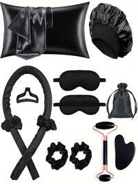 Set de 12 piezas de herramientas para el cuidado del sueño y el cabello, incluye rizador, 1 funda de almohada de seda (tamaño queen para el cabello y la piel), set de rizado sin calor, bigudíes para rizado nocturno, 1 antifaz de sueño suave, 1 gorro de dormir de seda, set de artículos esenciales para dormir, accesorios para el cabello, rodillo de masaje facial, productos para el cuidado del cabello, artículos para rizar, kit de peinado, de vuelta a la escuela #2 Más vendidos