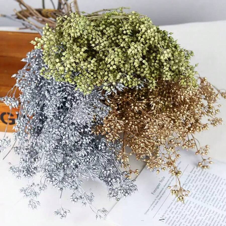 Ramo de flor de nébula deshidratada de alta calidad (60cm/23.62 pulgadas), eucalipto dorado plateado, flores secas para decoración de sala de estar y comedor, paquete de material DIY, ideal para arreglo de ramos, decoración del hogar, material de fondo para decoración navideña