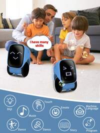 Lista de Productos 1 pieza Juguete robot de control remoto, compañero interactivo robot de voz inteligente con música y ojos LED expresivos, compatible con sensor táctil, función de demostración automática, puede bailar y cantar, robot emocional recargable para niños de 3 a 12 años, regalo de Navidad, Halloween, Pascua, cumpleaños, Año Nuevo (Azul)