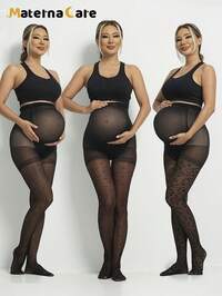 Trendy Tights1 pieza Pantimedias clásicas de jacquard para maternidad, con patrones de corazón, lunares y estampado de leopardo, delgadas y transparentes, de cintura alta y efecto estilizante, adecuadas para la vida diaria, el ocio en casa, las vacaciones, y apropiadas para el embarazo temprano, medio y tardío, y el posparto