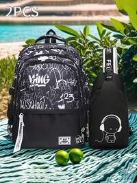 NH Fashion BagSet de 2 mochilas minimalistas y casuales de negocios: bolsa de hombro y bolsa de pecho, incluye mochila fluorescente extra grande y bolsa de pecho para viajes, campus, escuela, vacaciones - Tela de Oxford con impresión de expresión de dibujos animados. Conjunto de bolsas escolares multifuncionales para estudiantes, bolsa de agua, bolsa universitaria de gran capacidad, bolsa casual de pecho para hombres, bolsas laterales para hombres, bolso bandolera, bolso, bolso hobo, regalos de Navidad, Acción de Gracias para hombres 2 piezas Conjunto de mochilas fluorescentes para la noche para hombres, 2 piezas Conjunto de mochilas con estampado de dibujos animados minimalista y elegante con bolsa de pecho, adecuado para la escuela, para hombres, niños, regalos para hombres, estudiantes, otoño, viajes, Navidad, invierno, regalos, vacaciones, gran capacidad, multifuncional, al aire libre, portátil, de moda, casual, regalos para papá, regalos para novio, vacaciones, regalos divertidos, bolsa de pecho para hombres, bolsas laterales para hombres, bolso bandolera, bolso de cuero, bolso hobo, bolso negro, artículos de viaje, artículos de vacaciones, verano, primavera, Halloween