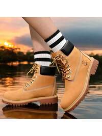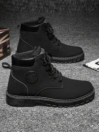 Botas para hombres, nuevo diseño, adecuadas para todas las estaciones, suela gruesa, aumenta la altura, resistente al desgaste, antideslizante, diseño de cordones con punta redonda, superficie clásico y retro, botas de trabajo con cordones impermeables y suela gruesa, adecuadas para estudiantes, campus, jóvenes, versátiles, estilo retro simple y rudo para calle, exterior, transporte, senderismo, ciclismo, equitación