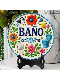 1 pieza Decoración de pared de baño con estilo floral español - Arte metálico resistente al agua, colores vibrantes, fácil de colgar, 7.8"X7.8" para decoración interior/exterior del comedor, patio - idea de regalo única, arte de pared de baño, patrón de rollo decorativo, letrero duradero, plano 2D, decoración de habitación perfecta, colocación aleatoria de agujeros #6 Más vendidos