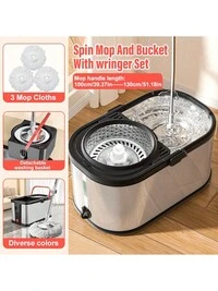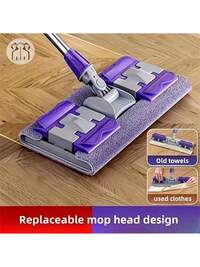 SHEIN 1 PIEZA Mopa sin manos, mopa plana con mango de acero inoxidable, para uso en seco y húmedo, almohadilla de mopa giratoria, diseño de clip con escurridor, limpieza de pisos de baldosas y madera dura, herramienta de limpieza de baño, mopa absorbente, mopa plana para piso de madera (incluye almohadilla de mopa*1), protege el piso, sin residuos #2 Más vendidos
