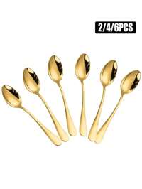 4 piezas Juego de cucharas de acero inoxidable 410 de 14 cm con mangos con forma de corazón de cerámica, chapado en oro, ideal para el té de la tarde, postres, cafeterías, bodas, té de la tarde elegante, viajes, fiestas, vajilla de cafetería, cena elegante, cucharas decorativas, cubertería de moda, utensilios de cocina duraderos, regalo para el Día de la Madre #1 Más vendidos