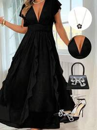 Elenzga Vestido largo de mujer talla grande con tirantes de espagueti y volantes, unicolor, elegante, adecuado para volver al colegio, graduación, San Valentín, festival de música, Día de la Madre, Halloween, Acción de Gracias, Pascua, Baile de graduación, citas, temporada de bodas, excursiones al aire libre #2 Más vendidos