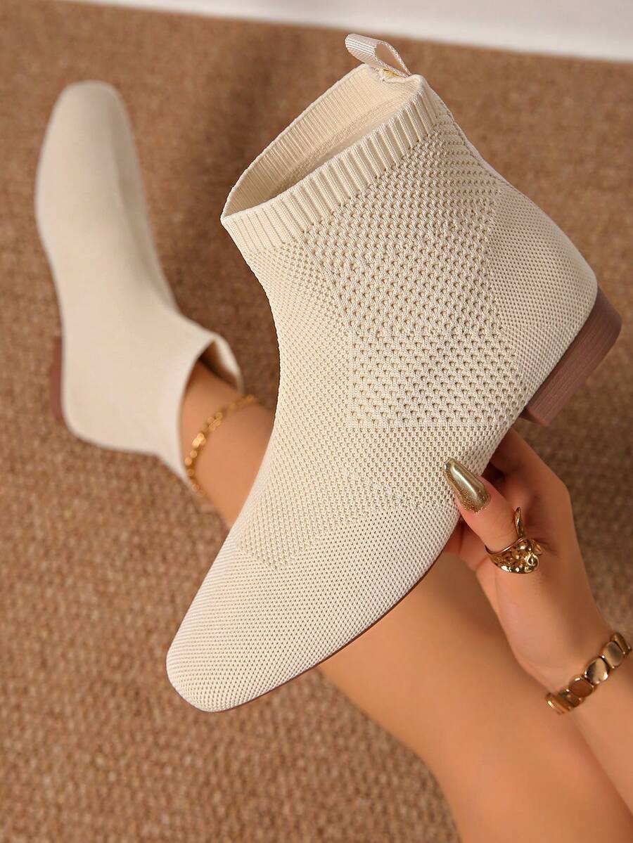 Botines de tobillo de punta afilada con parches y punto, botas cortas francesas vintage de ajuste delgado con acabado mate, botas cortas versátiles de tacón alto al estilo francés, botas de mujer, botas de tacón grueso y ajuste delgado, botas cortas, otoño, talla grande, botas cortas, botas cortas elásticas de punto