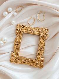 1 pieza Marco de foto pequeño de resina con estilo europeo vintage dorado con relieve, marco en blanco, decoración floral, scrapbooking, accesorio de fotografía