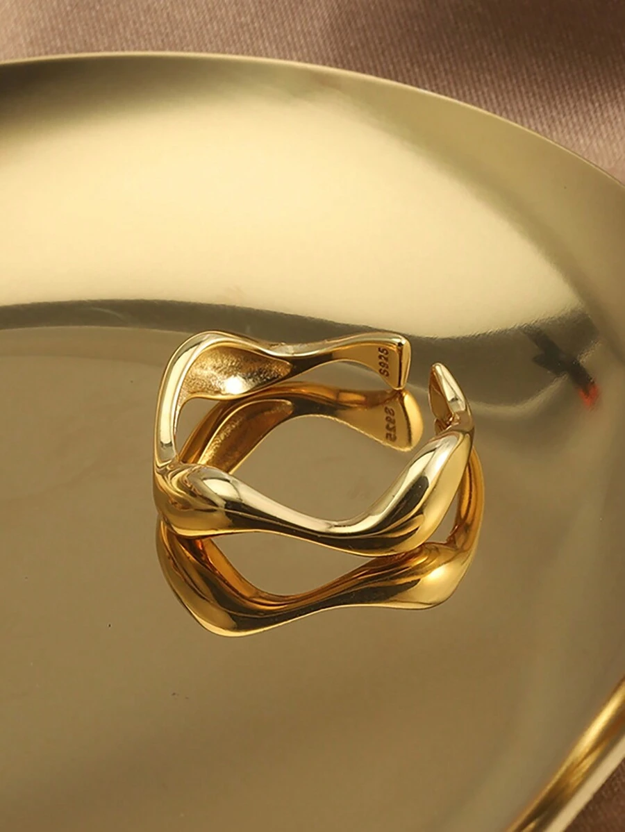 Stylever Anillo De Puño Ondulado Ancho Para Mujer, De Plata De Ley S925, Anillo Liso Minimalista, Joyería Fina, Regalo Para Niña, Decoración De Fiesta, 1 Ud.