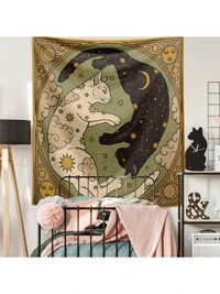 Tapiz con estampado de flores, bandera para habitación, decoración de habitación, tapiz, decoración de pared, arte de pared, decoración del hogar, artículos para la habitación, banderas para la habitación, tapiz, tapiz de pared 1 pieza Tapiz de pared con estampado vintage de sol, luna, gato de la suerte, constelación, letras, estilo bohemio para decoración del hogar, sala de estar, dormitorio, oficina, dormitorio, fiesta en casa, pared de la cocina rectangular con tela colgante, incluye 3 alfileres y 2 clips #3 Más vendidos