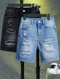 YozikPantalones cortos vaqueros desgastados para adolescentes, jeans azul claro vintage, corte holgado, ropa casual de calle, tela de algodón cómoda, adecuado para primavera/verano, al aire libre, fiestas, escuela, vacaciones, ir y venir