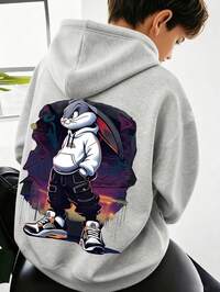 Ropa de chico adolescente de moda callejera, sudadera holgada de manga larga con estampado de letras, con patrones de estilo de pintura interesantes, sudadera con capucha de unicolor para niños, adecuada para uso diario, fiestas, escuela, asistir a festivales de música, vacaciones, ir y venir. Se puede regalar a familiares, novio, novia, amigos, ropa de invierno para niñas, sudadera esencial Sudadera con capucha casual minimalista para adolescentes, con estampado de cabeza de lobo de manga larga, de grosor convencional y ajuste holgado, adecuada para otoño/invierno, para uso diario, fiestas, escuela, asistir a festivales de música, vacaciones, ir y venir. Puede ser un regalo para familiares, novio/novia, amigos, ropa de invierno para chicas, sudadera esencial