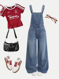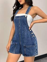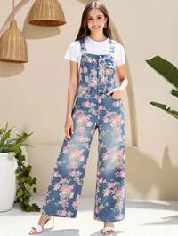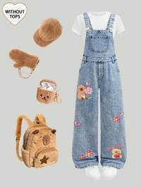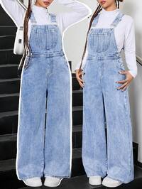 SHEIN SLAYR KIDSSHEIN Ropa de moda casual para adolescentes, diseño vintage lavado en marrón, estilo callejero, regreso a la escuela, universidad, diseño de bolsillo, peto de mezclilla azul para ropa de adolescentes, ropa diaria y de invierno y otoño, atuendos de rave, festivales, Navidad, ropa de calle, ropa de escuela, ropa de otoño e invierno para niñas