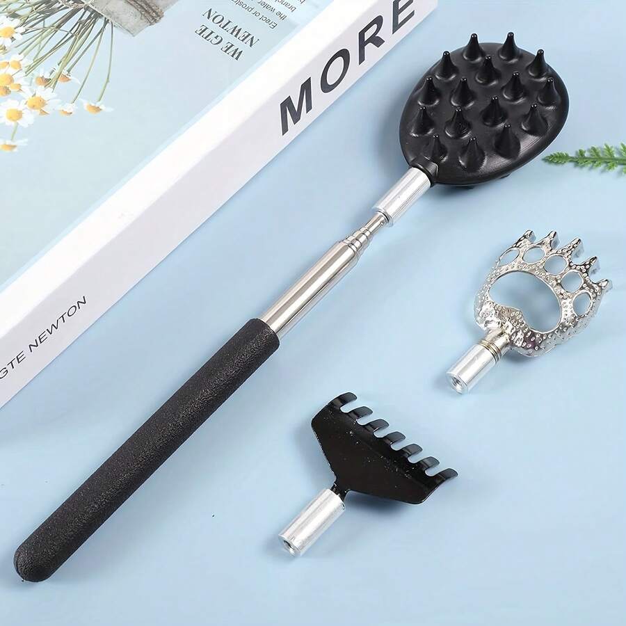 Rascador de espalda telescópico con 3 cabezales de rascado desmontables, rascador de cactus de viaje mini rascador de espalda, regalo del Día del Padre para hombres, rascador de espalda para hombres/padres/mujeres, Gua Sha, drenaje linfático, celulitis, rascadores de espalda, escuela, vuelta al cole, viaje, artículos de viaje, artículos del hogar, spa, herramienta de masaje, masaje, masajeador, spa