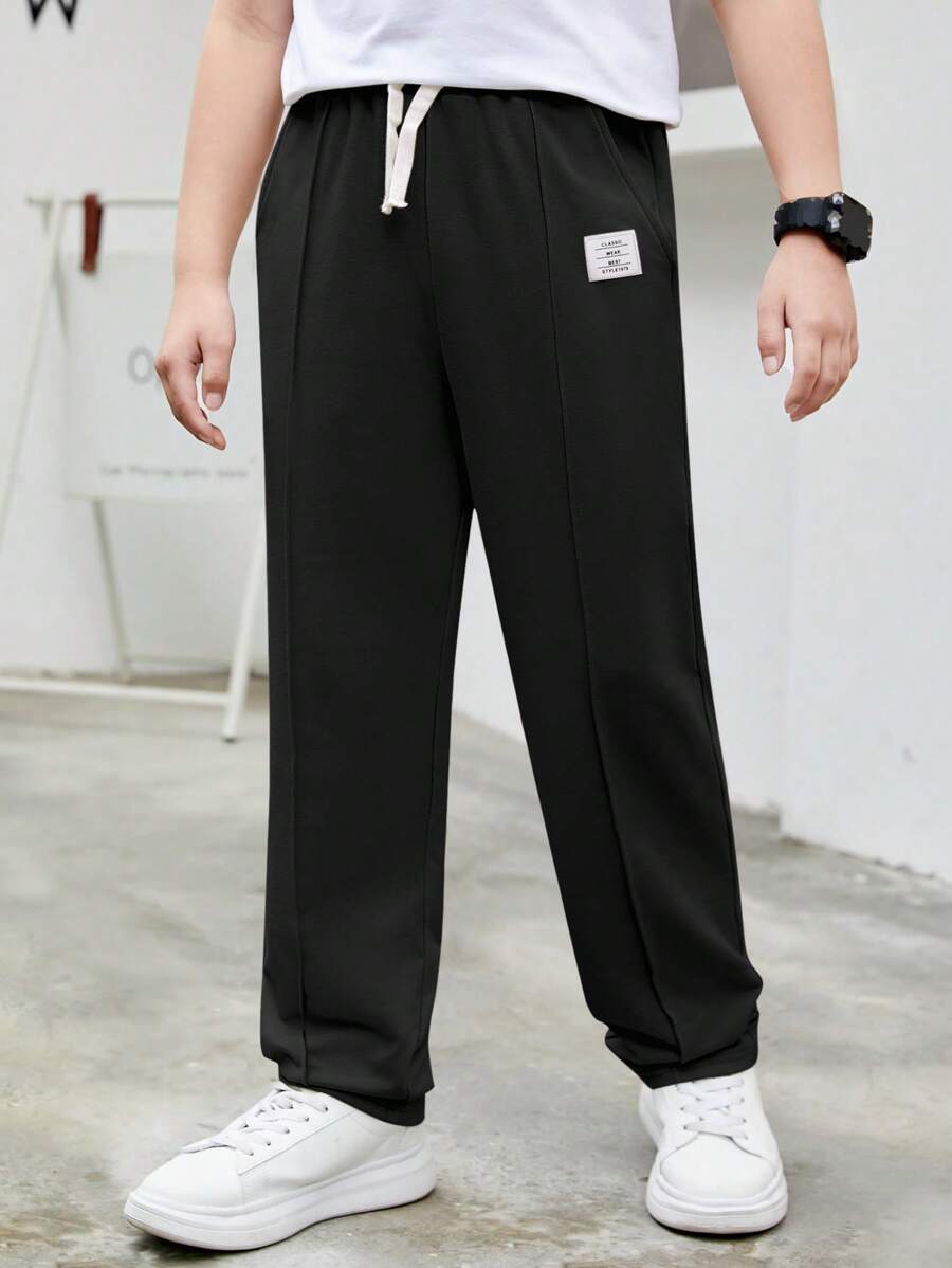 SHEIN Pantalón de chándal informal con cordón en la cintura y bolsillo para niño preadolescente con decoración de parches