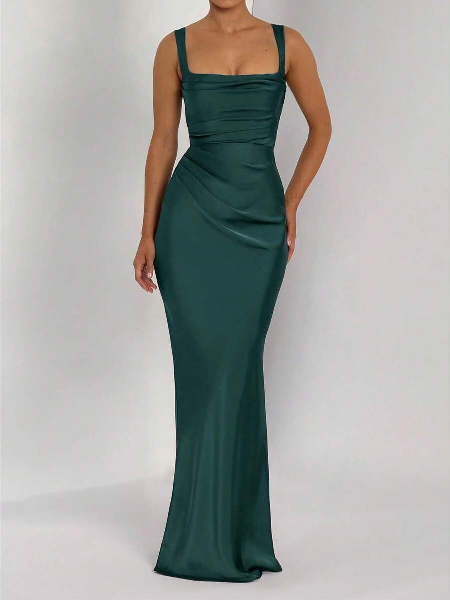 Vestido elegante de Acción de Gracias Vaiaye para mujer, con espalda descubierta, cintura con lazo y falda ajustada. Vestido de satén romántico adecuado para citas, temporada de graduación, fiestas, vacaciones y atuendo de Año Nuevo