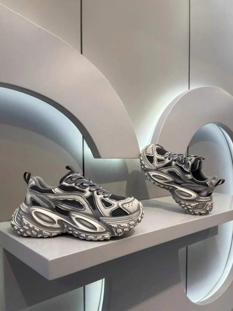 Zapatillas deportivas con suela gruesa cómodas y con estilo vintage desgastadas para hombre, calzado atlético muy atractivo y con diseño de calle