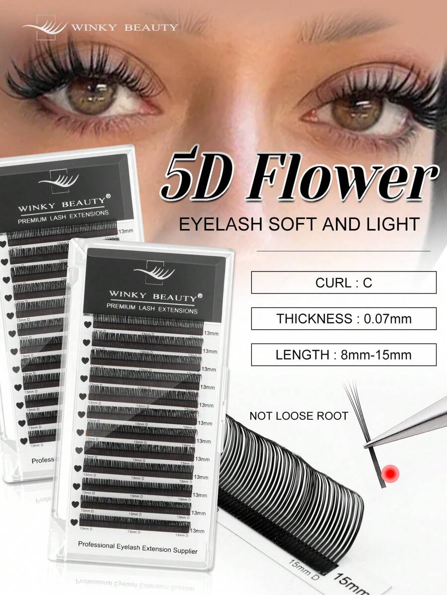 Winky Beauty 12 pares de racimos de pestañas florales 5D de estilo de hada, de rápido florecimiento, adecuadas para cosplay, cómics, anime, Halloween, etc. Hebras suaves, material de visón, pestañas individuales esponjosas, volumen en forma de C, pestañas postizas, herramienta de maquillaje, para artistas de pestañas y salones, 0.07mm, forma D, longitud de 8-15mm