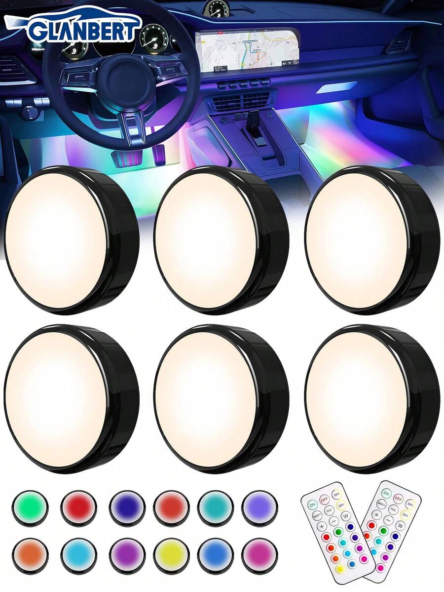 GLANBERT Luces LED decorativas inalámbricas para automóvil con control remoto, luces LED ambiente táctiles de alta luminosidad y multimodales, luces LED RGB de 13 colores cambiantes para el interior del automóvil, decoración para el espacio debajo del asiento