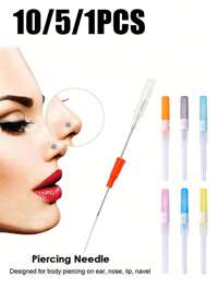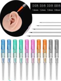 10/5/1 Paquete de agujas de perforación desechables estériles, cánulas para perforación de oreja, nariz, labio, ombligo. Tamaños: 14G, 16G, 18G, 20G, 22G, 24G. Adecuado para perforación de oreja, nariz, septum, ombligo. Agujas de perforación desechables de colores para perforación de oreja, nariz, ombligo, labio, cartílago - Inodoro, estéril, sin batería requerida. Suministros para perforación de cartílago | Puntas de aguja de colores | Agujas estériles #10 Más vendidos